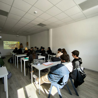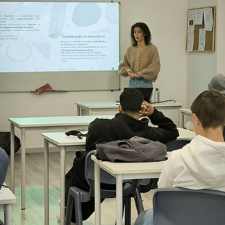 A sessão realizada contou com as turmas de 1º ano dos cursos de Técnico/a de Informática-Sistemas, Técnico/a Auxiliar de Farmácia e Técnico/a de Eletrónica, Automação e Computadores para participarem com dúvidas e ideias sobre os temas em discussão.